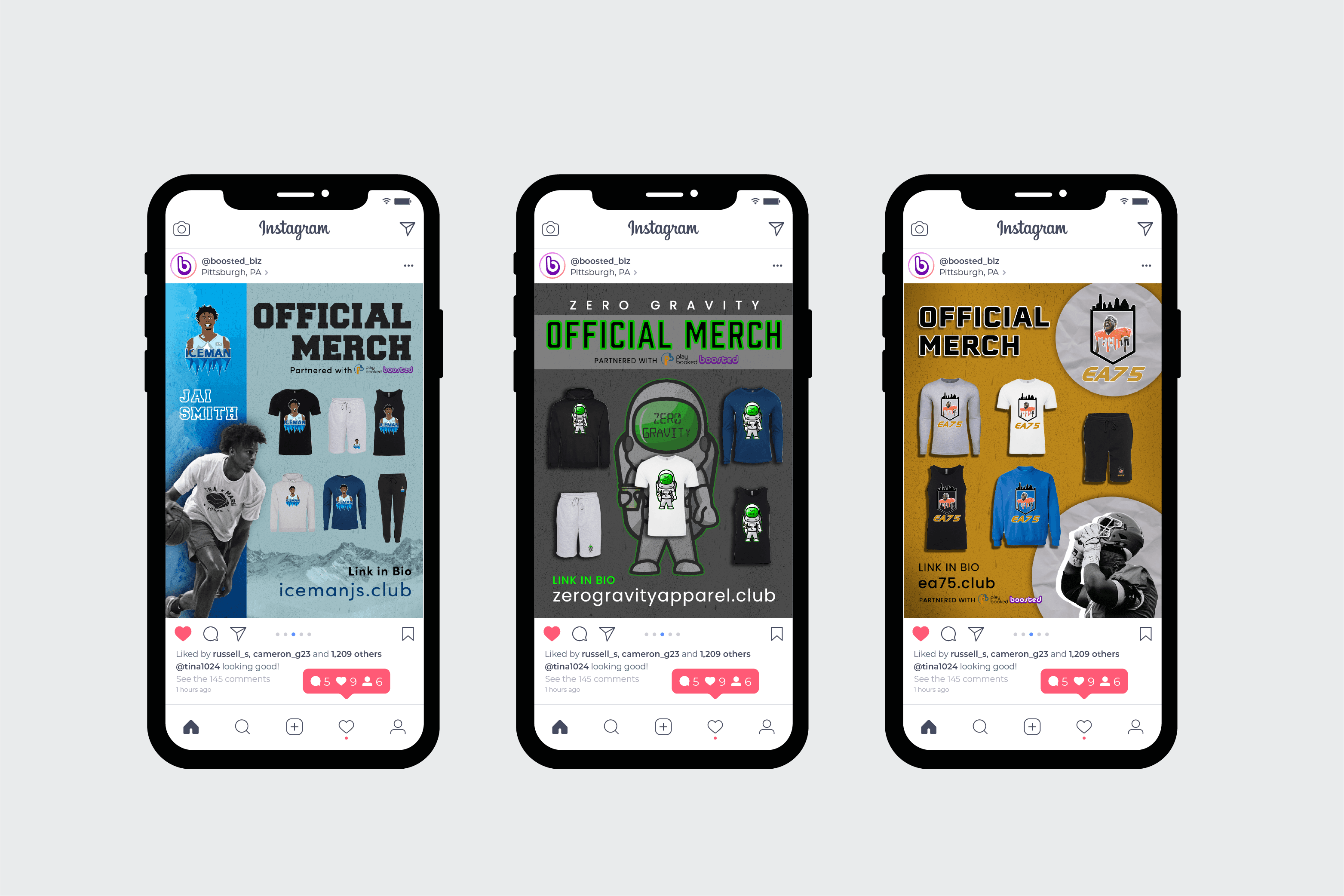 Mainly focused on athlete clientele, I worked on making 30+ Instagram flyers to promote our clients' merchandise as well as worked with collegiate clients to build their brands, allowing them to monetize off of their likeness.