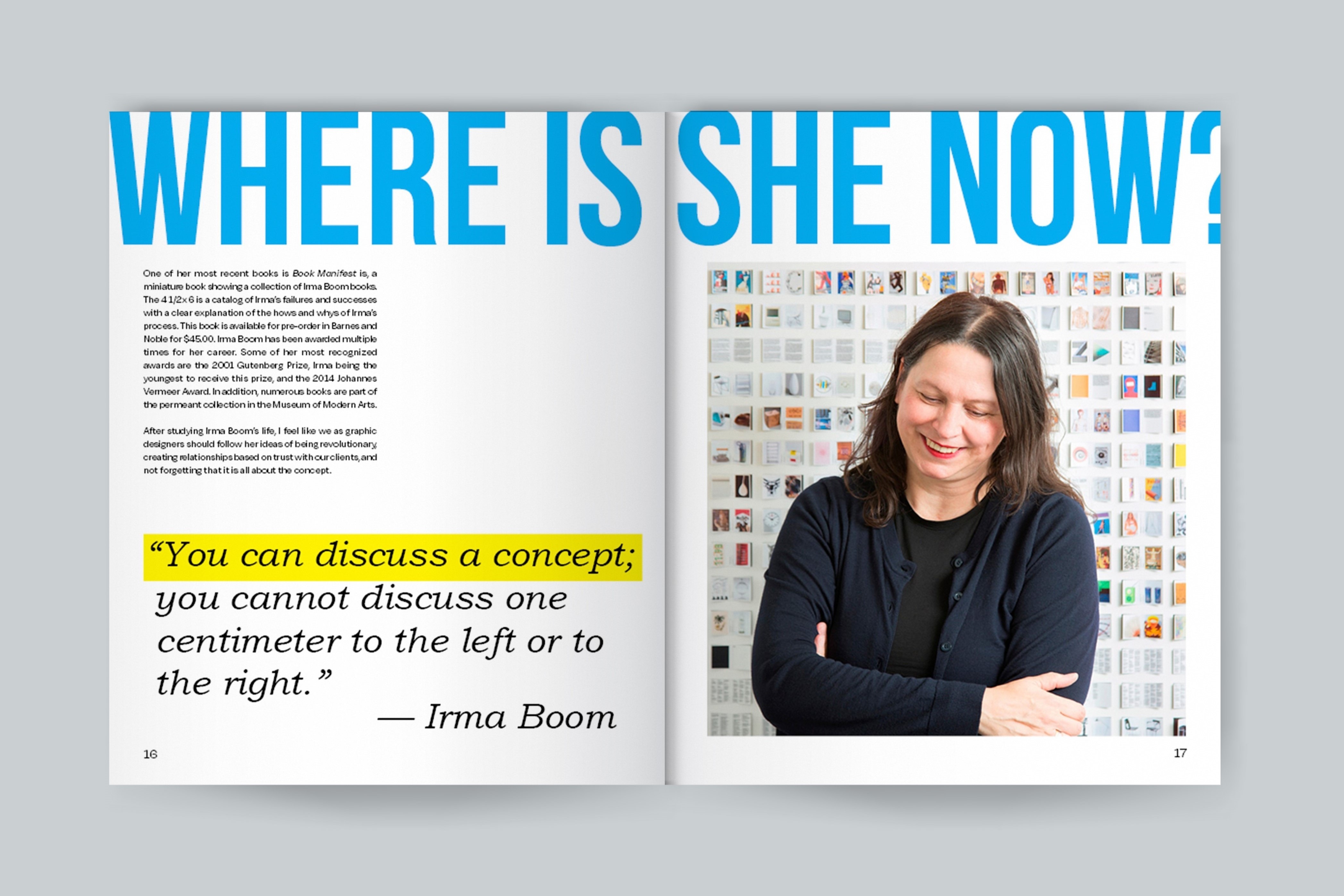 This booklet talks about her life and many of the works she has created as a Graphic Designer.